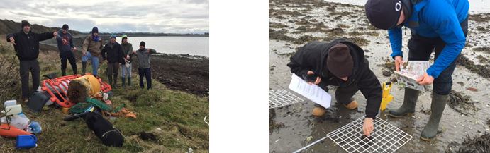 MSc students complete an impromptu beach clean after the field class with Dr Metzner and employ habitat survey methods to assess biodiversity at the site.