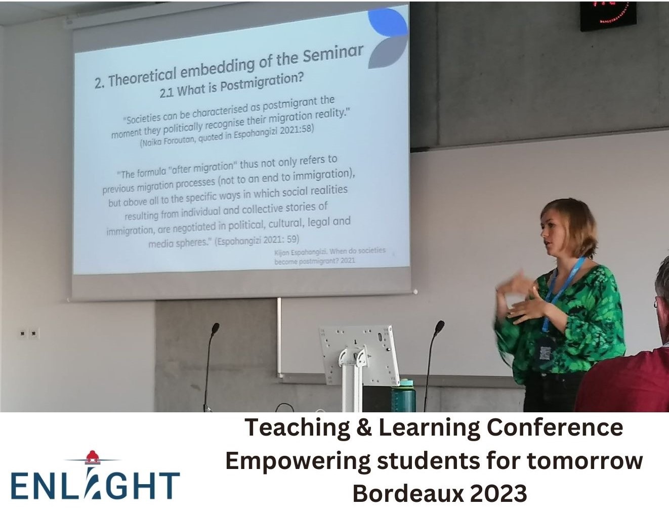 Antonia Musolff representing the German Discipline of the University of Galway with a presentation on "Empowering Students through Post-Migrant German Podcasts and Podcast Making" at the annual ENLIGHT Teaching and Learning Conference in Bordeaux from the 11th to the 13th October 2023.