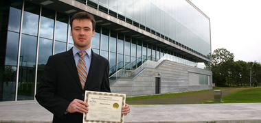 William Ronan, PhD student in Mechanical and Biomedical Engineering at NUI Galway, has won first prize in the PhD Student Paper Competition at the American Society of Mechanical Engineering Biomedical Engineering Conference, a leading US conference in the field of biomedical engineering and biomechanics. William, from Cloneen, Co. Tipperary, was shortlisted as one of six finalists in the category of cell mechanics from over 150 international applicants and based on his submitted paper and podium presentation he was awarded first prize. Currently in the third year of his PhD research under the supervision of Dr Patrick McGarry, William has developed advanced computational models that predict the active response of biological cells to different mechanical environments. His winning paper is entitled “Simulation of Stress Fiber Remodeling and Mixed-mode Focal Adhesion Assembly During Cell Spreading on Elastic Substrates”. Speaking of this success, Professor Seán Leen, Head of Mechanical and Biomedical Engineering at NUI Galway, said: “William’s achievement is a testament to the high quality of research being carried out in Biomedical Engineering at NUI Galway and, in particular, by his supervisor Dr McGarry. This type of internationally-leading performance is also evidence of the exceptional talent being developed in Irish Universities with the support of successive Irish governments and industry.” William is funded by an Irish Research Council for Science, Engineering and Technology (IRCSET) scholarship and the research is also supported by Science Foundation Ireland Research Frontiers Programme (SFI-RFP) and the Irish Centre for High End Computing (ICHEC). This is the second major international award won by a member of Dr McGarry’s research group in 2011, with PhD student Emer Feerick also winning first prize at the Annual Symposium on Computational Orthopaedic Biomechanics inthe US in January. ENDS