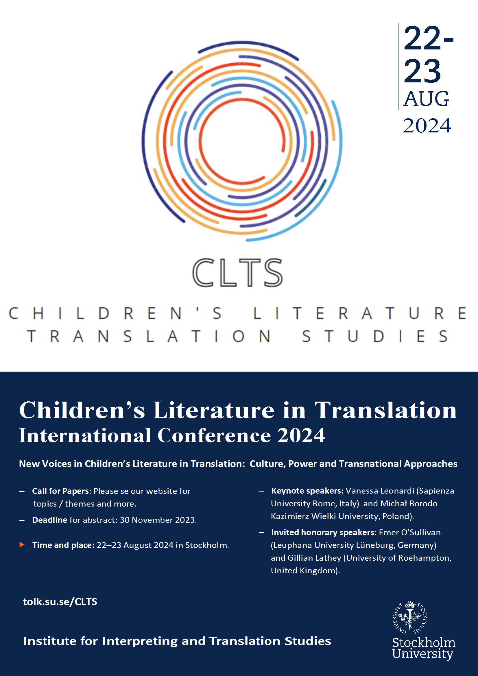 The International Conference in Children’s Literature and Translation Studies (CLTS) is taking place from the 22nd - 23rd of August 2024 in Stockholm under the theme: