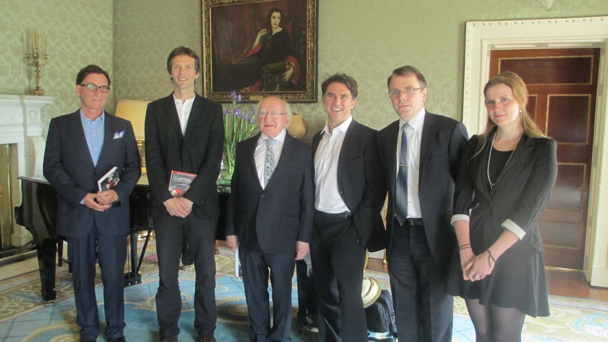 Pictured at Áras an Uachtaráin, June 3rd 2016, for the launch of Philosophy and Political Engagement (edited by Allyn Fives and Keith Breen, Palgrave) are (from left to right): Joseph Mahon, Dr Allyn Fives, President Michael D. Higgins, Prof. James E. Mahon, Prof. Felix O’ Murchadha, and Annie McKeown O’Donovan